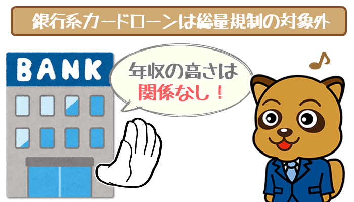 つまり「銀行カードローンは総量規制対象外で年収の3分の1以上借りれる」わけです。