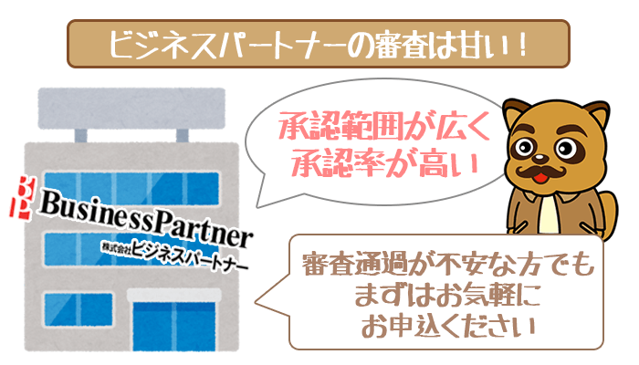 つまり、ビジネスパートナーはリスクがある相手に貸せるくらい審査が甘いといえるワケです。
